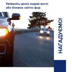 Згідно п. 9.8 Правил дорожнього руху, з 1 жовтня по 1 травня на всіх механічних транспортних засобах поза населеними пунктами повинні бути включені денні ходові вогні, а в разі їх відсутності в конструкції транспортного засобу - ближнє світло фар. Це правило діє цілодобово, тобто і в світлий час доби.